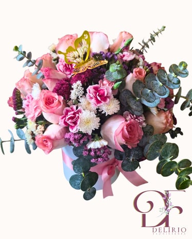 Celebración en rosa. Una hermosa caja con flores pastel frescas para alegrar el día.